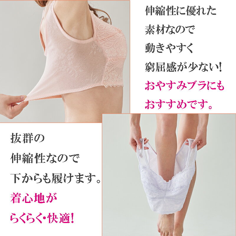 メッシュ 綿混 速乾 吸水 吸汗 伸縮性 ソフトカップ ブラインナー ブラジャー おやすみブラ ノンワイヤー ノンホック 女 女性 おすすめ 40代 50代 60代 幅広サイドや幅広バスト下で安定感ある着心地。