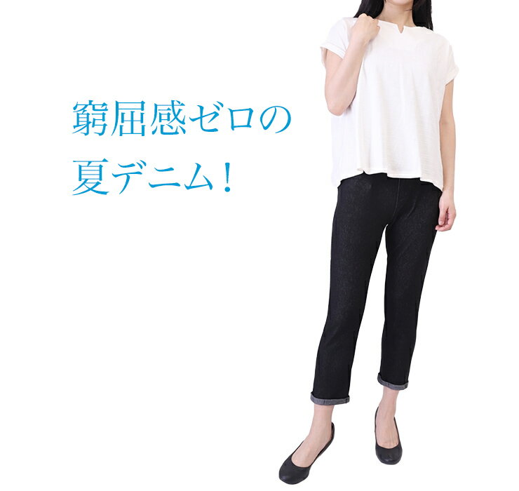 ウエストゴム ストレッチ クロップド デニムパンツ レディース【 伸びる ニットデニムパンツ ジーンズ ジーパン 7分丈 大きいサイズ もあり 涼しい レディースデニム レギンスパンツ ミセス ゴムパンツ ボトムス プルオン 夏 サマー 綿パンツ ズボン denim pants 】